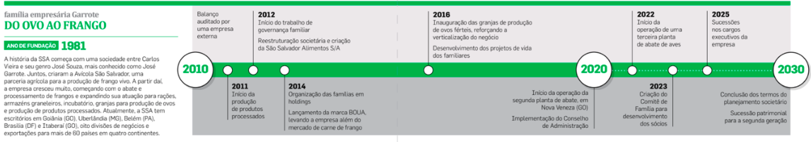 A visão de que era preciso dar atenção à sucessão veio com Garrote. “Nós dois tocávamos o negócio e tínhamos visões muito diferentes, era mais complicado. Uma palestra sobre sucessão me fez perceber que eu era a primeira geração e precisaríamos, com o tempo, resolver nossas diferenças para garantir que a empresa prosperasse. Chegamos a um acordo: ele passou a cuidar das fazendas e eu da produção de frango”, lembra.